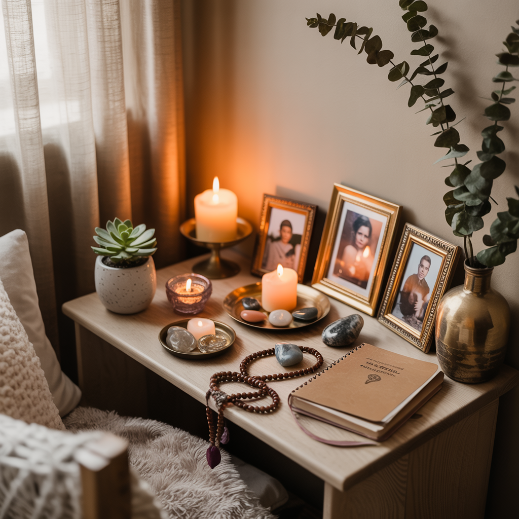 A: Select one or two personal objects or sacred items. Simplicity is key for a mindful space.